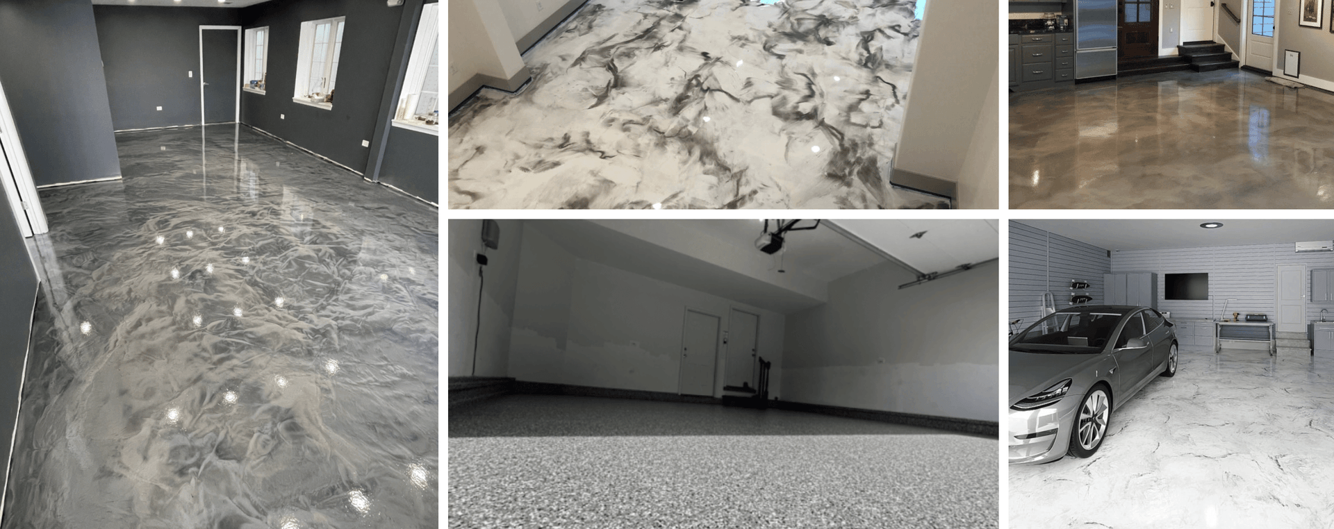- Durable, modern metallic epoxy coatings and polyurea or polyaspartic coating options